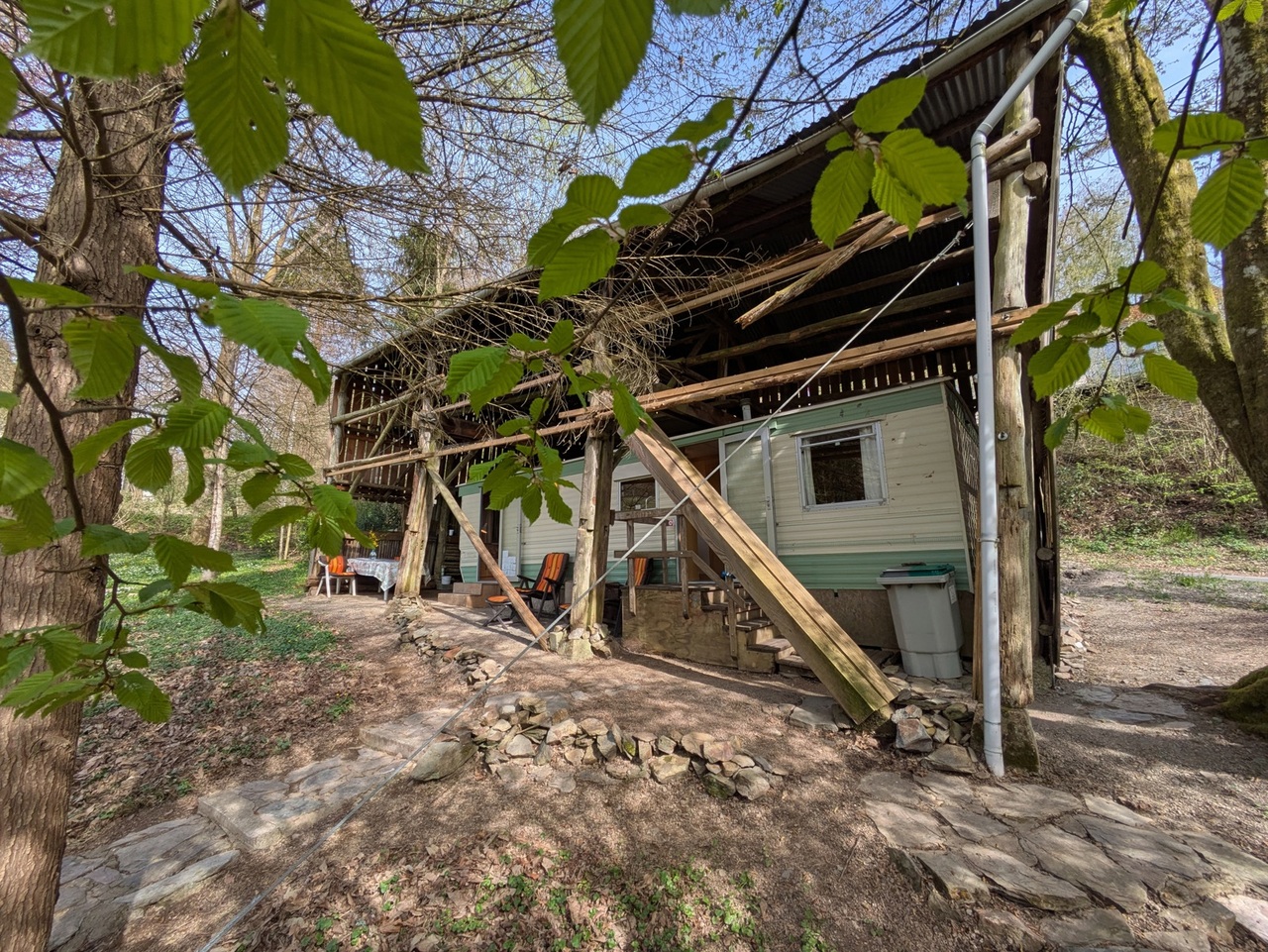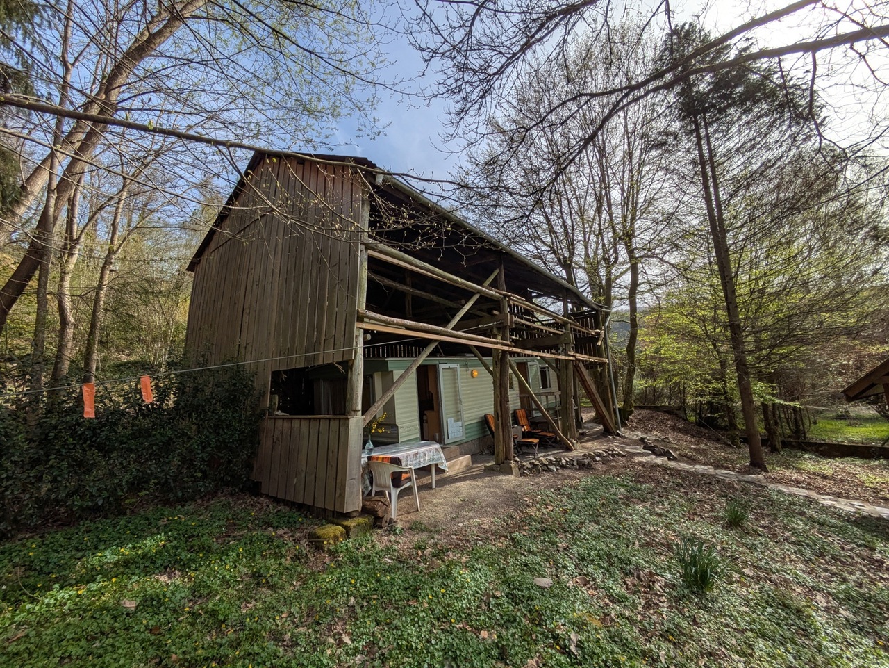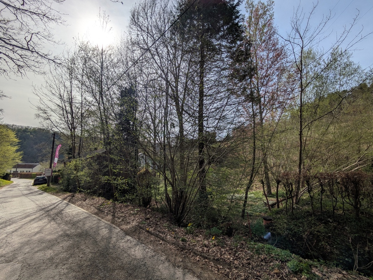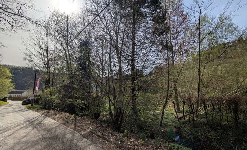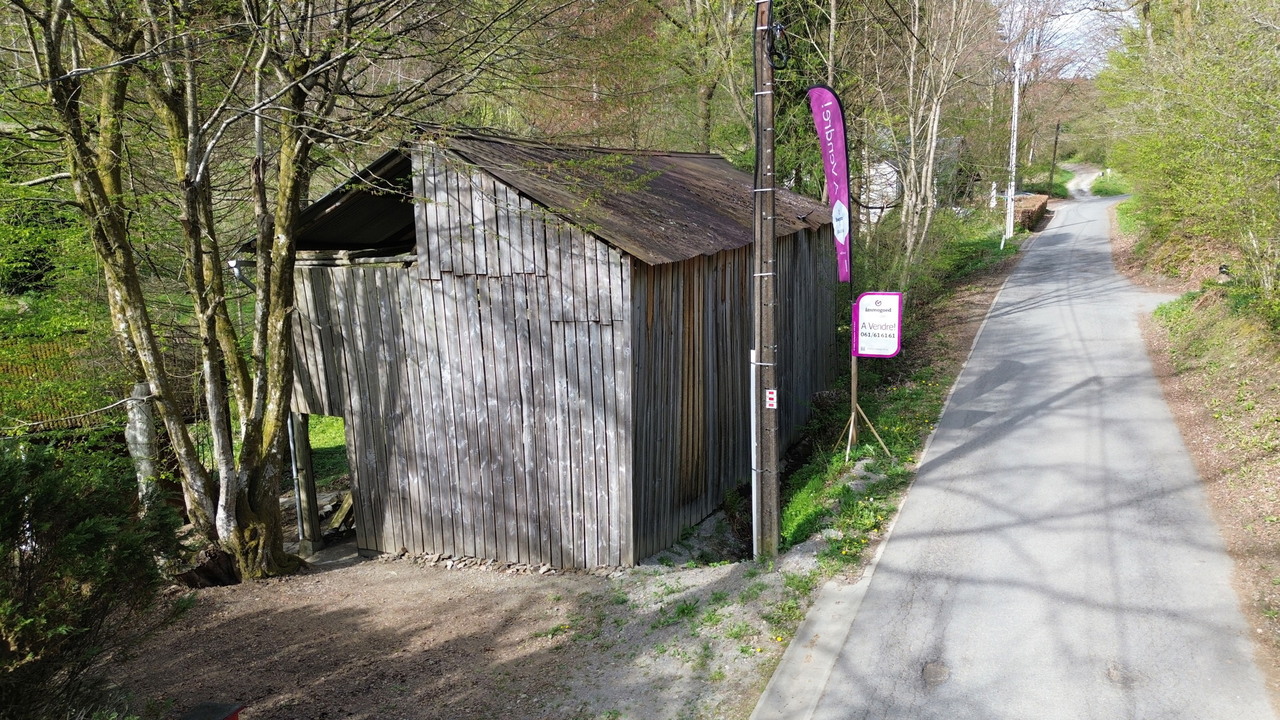 Gelegen aan de rand van het bos, langs een rustige doodlopende straat in Poupehan, bevindt zich dit perceel met een houten loods (vroeger in gebruik als tabaksdrogerij) en een degelijk tuinhuis.