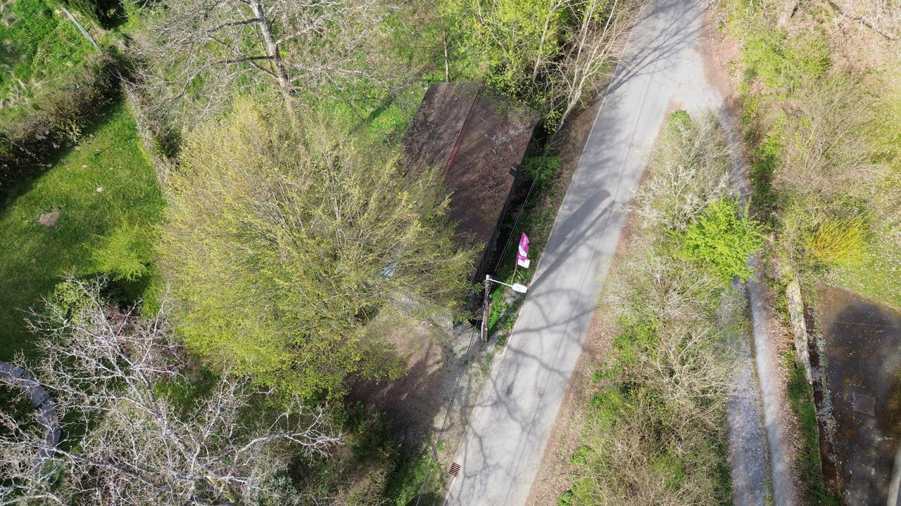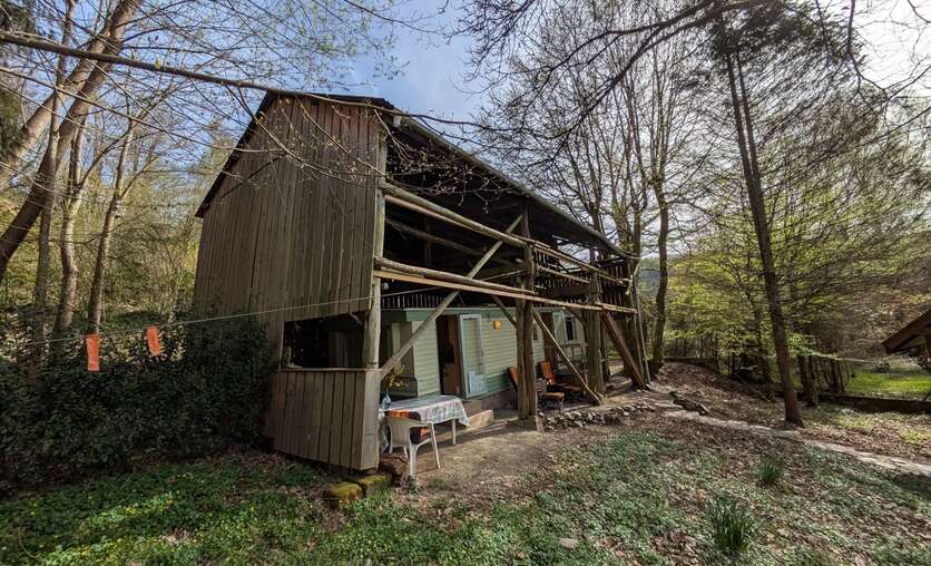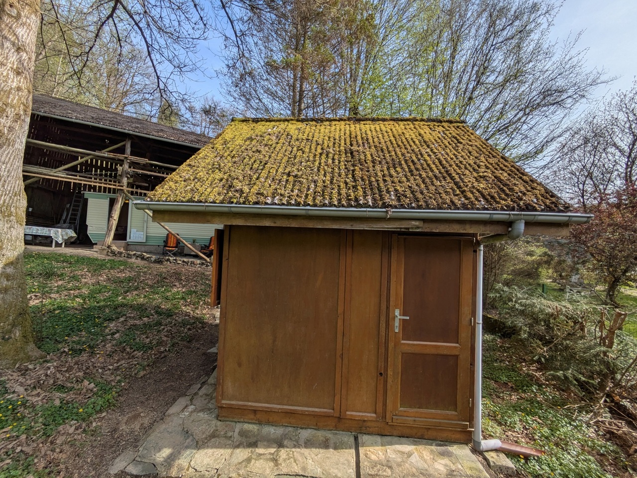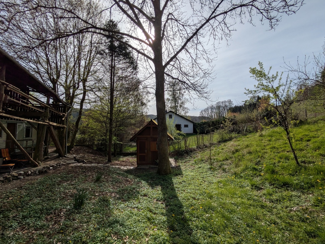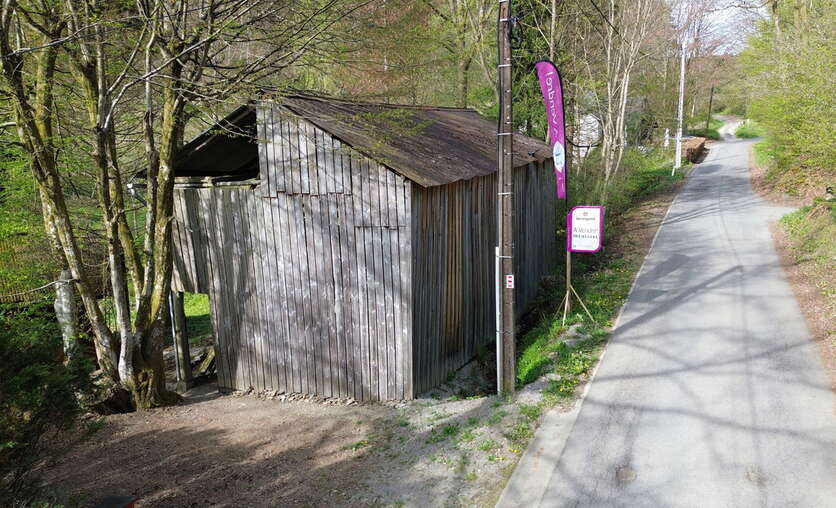 Gelegen aan de rand van het bos, langs een rustige doodlopende straat in Poupehan, bevindt zich dit perceel met een houten loods (vroeger in gebruik als tabaksdrogerij) en een degelijk tuinhuis.