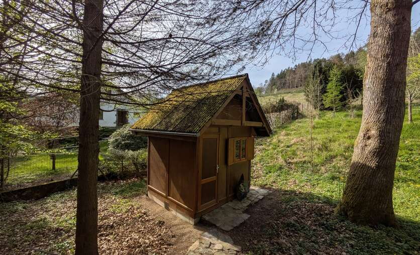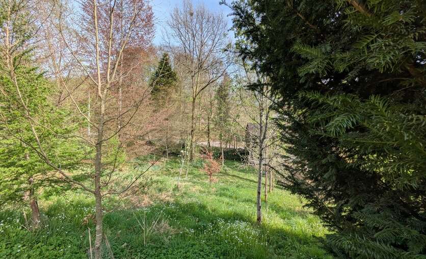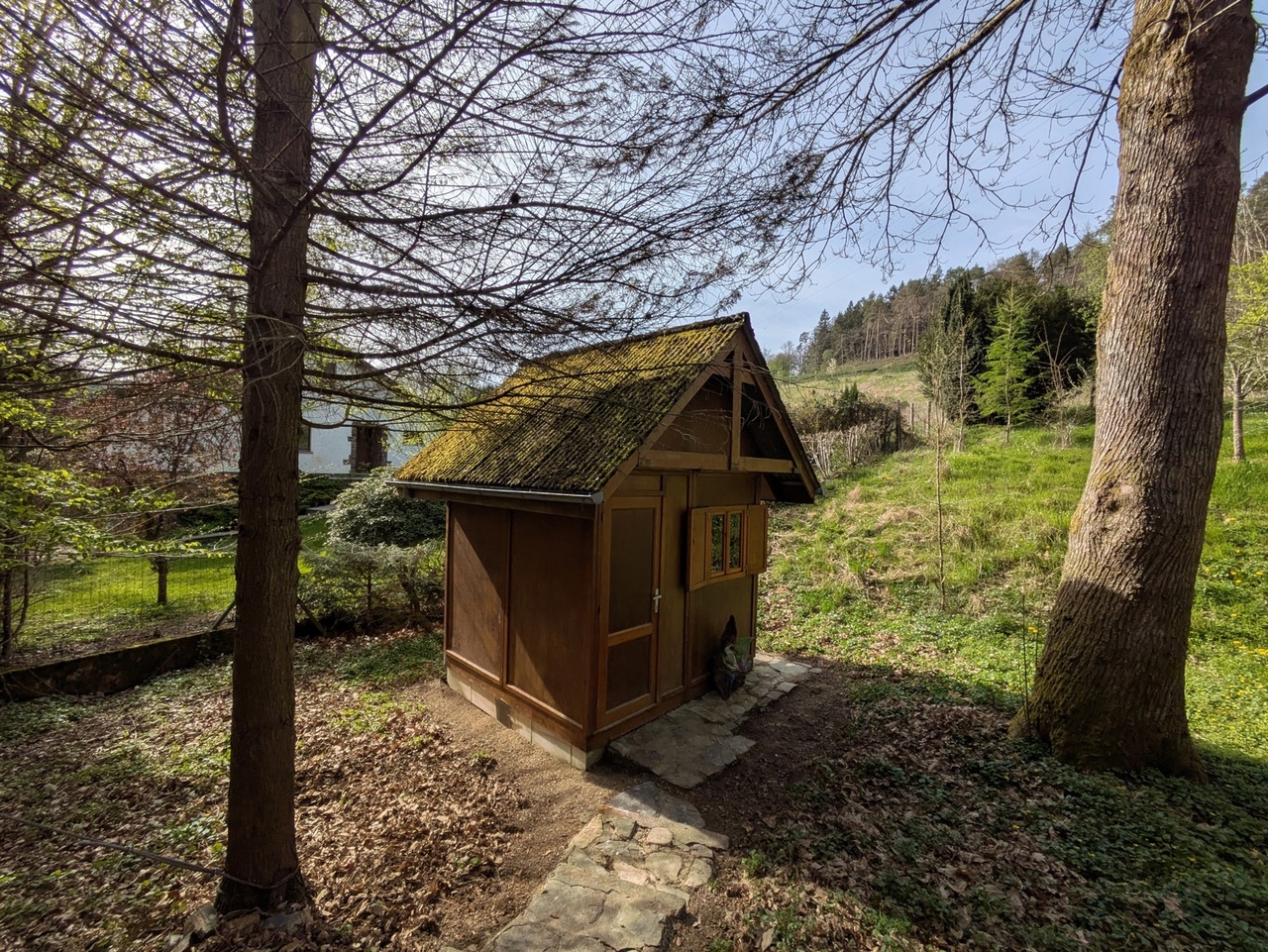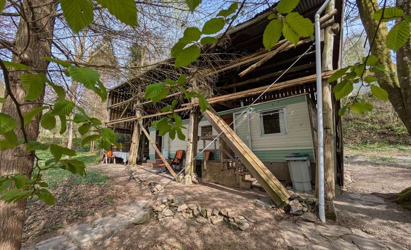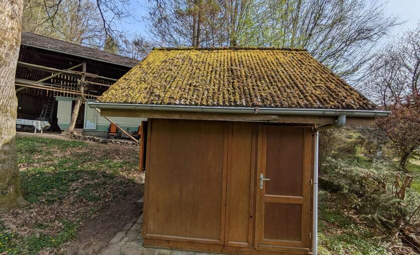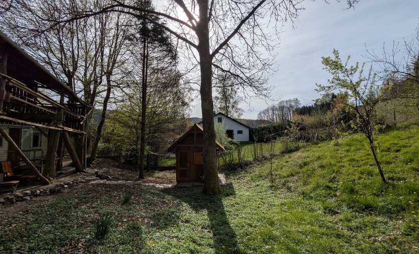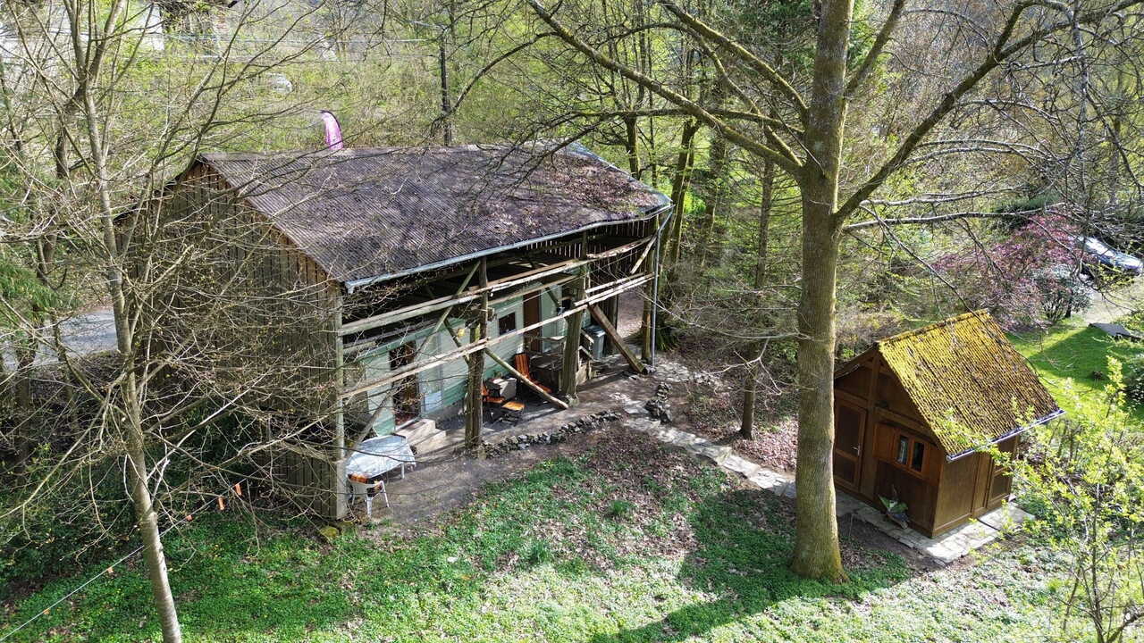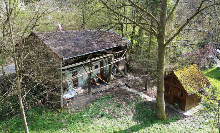 Gelegen aan de rand van het bos, langs een rustige doodlopende straat in Poupehan, bevindt zich dit perceel met een houten loods (vroeger in gebruik als tabaksdrogerij) en een degelijk tuinhuis.