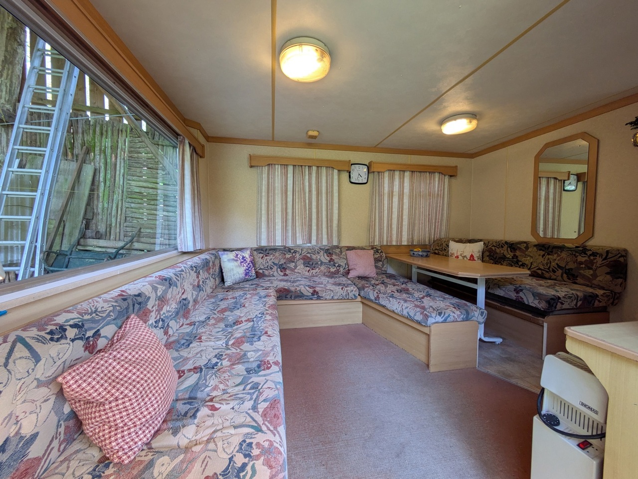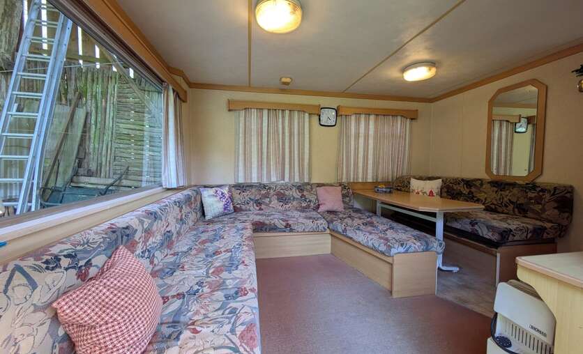 De aanwezige gebruiksgoederen en de caravan kunnen desgewenst ter plaatse blijven.
