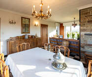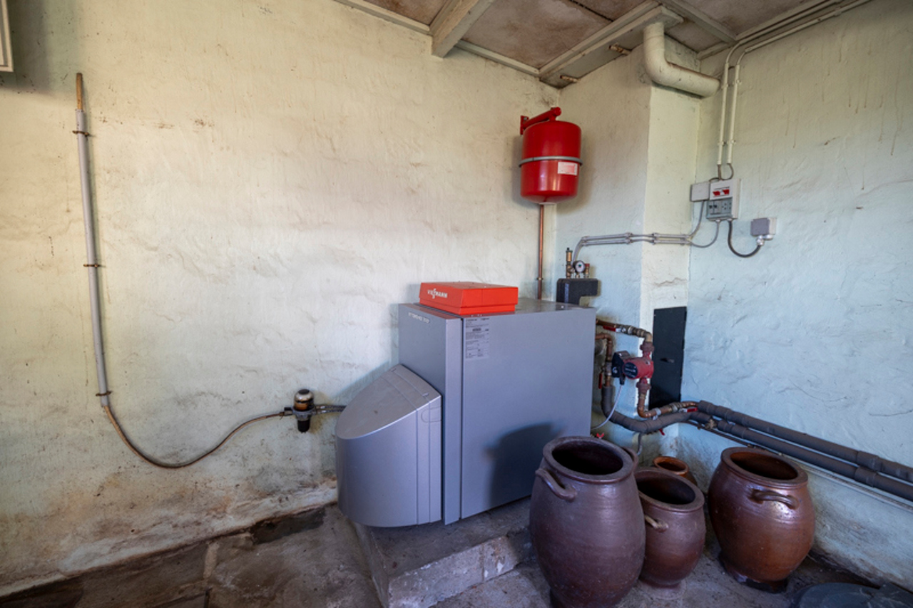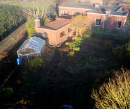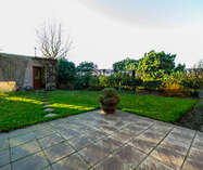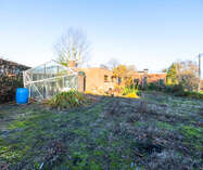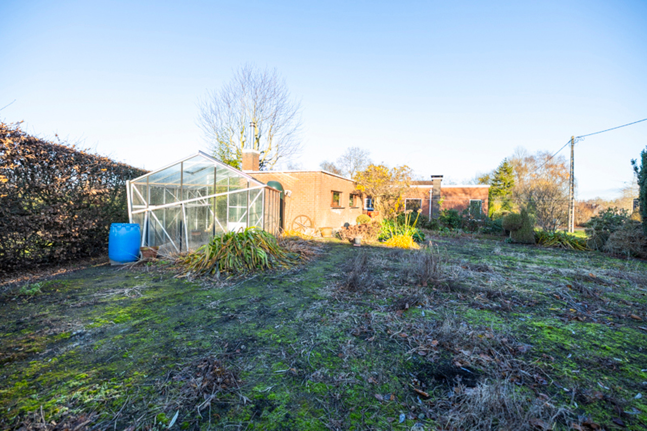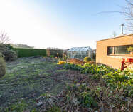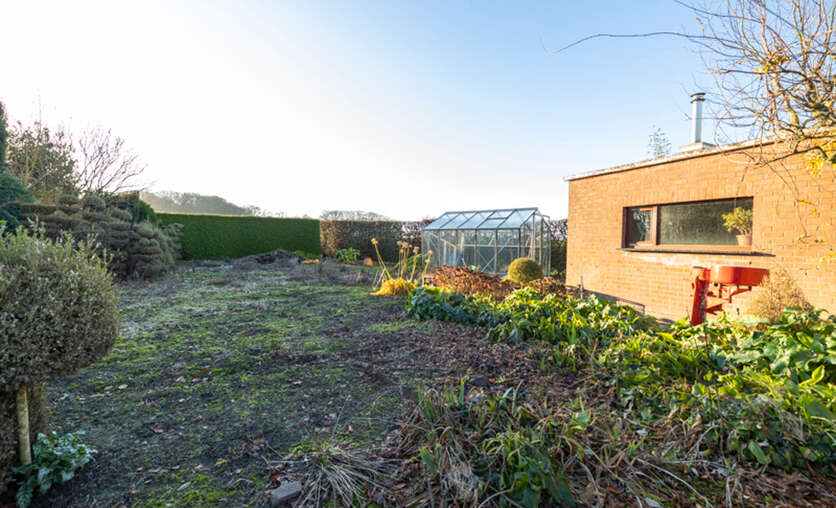 De woning is omgeven door een aangename tuin met gazon en moestuin, ideaal voor wie van groen en buitenleven houdt. Het bijgebouw biedt extra opslag- of werkruimte.