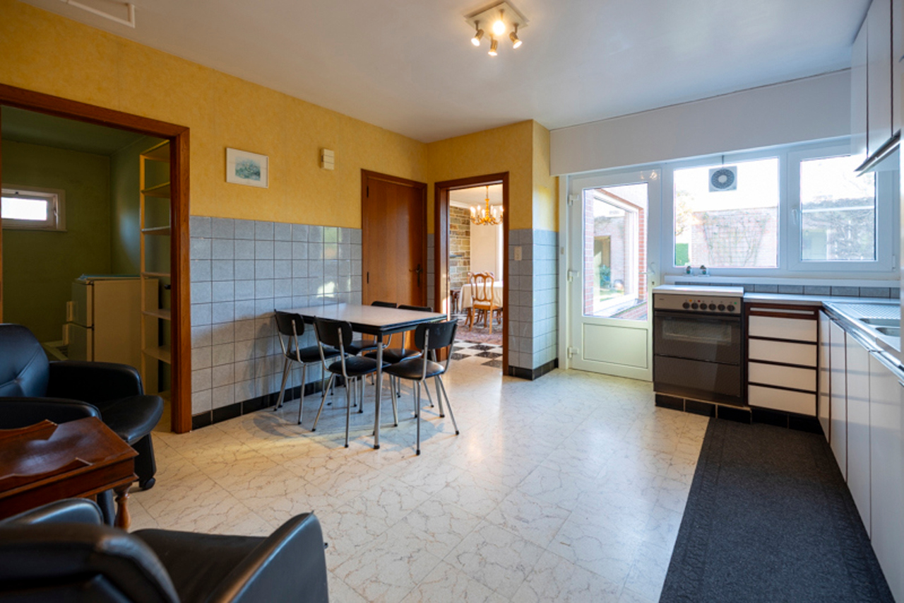De woning is volledig gelijkvloers en biedt een bijzonder ruime indeling met drie volwaardige slaapkamers, een grote leefruimte en een ruime keuken. Dankzij de solide basis en de praktische indeling is dit een ideale woning voor handige kopers, gezinnen of wie gelijkvloers wil wonen met uitbreidings- en renovatiemogelijkheden.