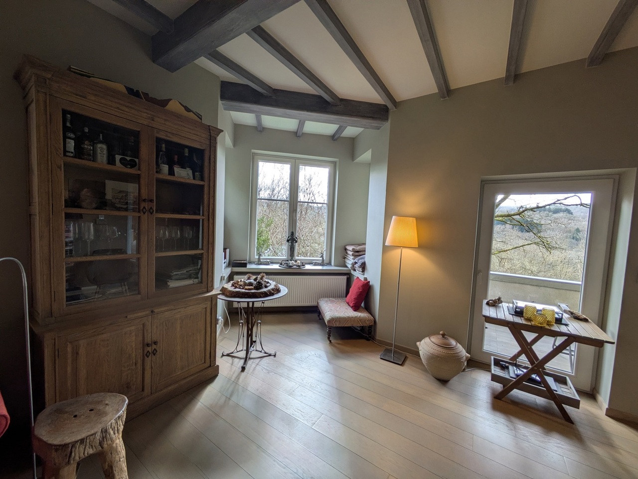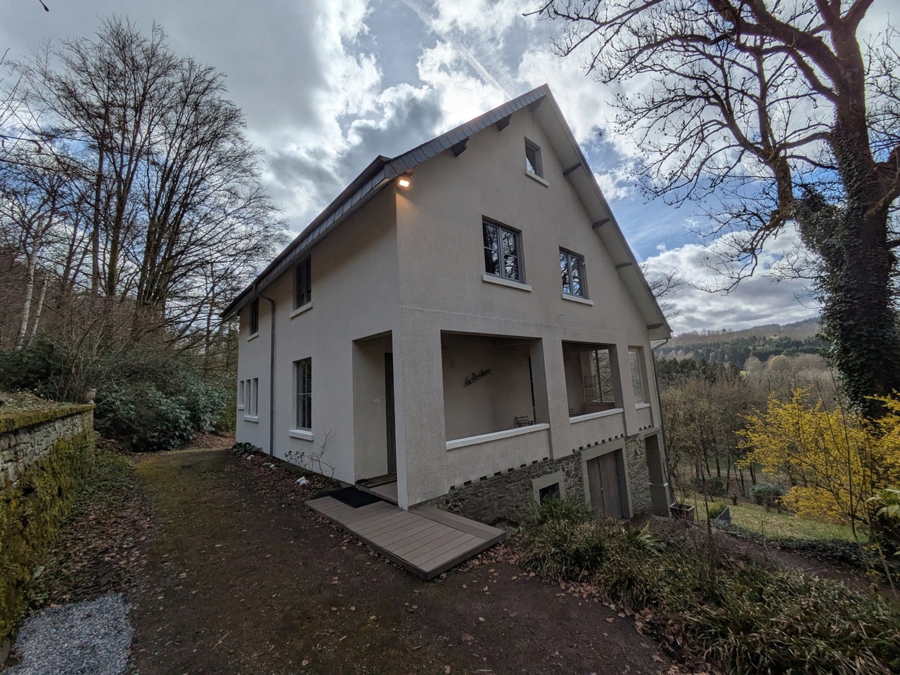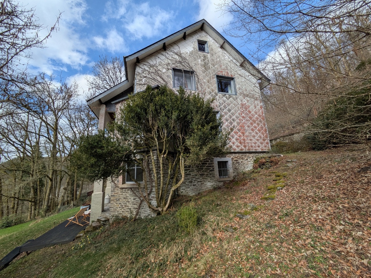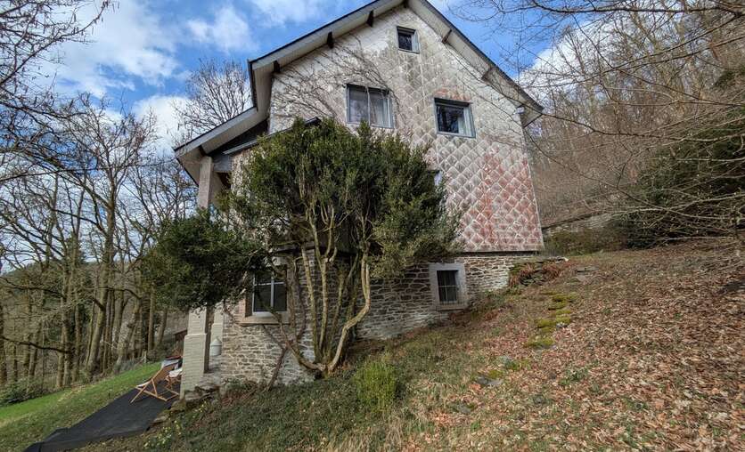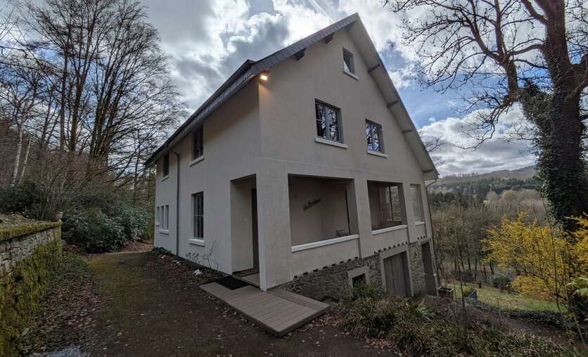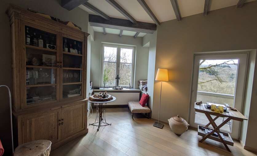 De woning is idyllisch gelegen, hoog in het bos, op het einde van een doodlopende weg en met zicht op lager gelegen Semois en vallei! Gewoon prachtig!