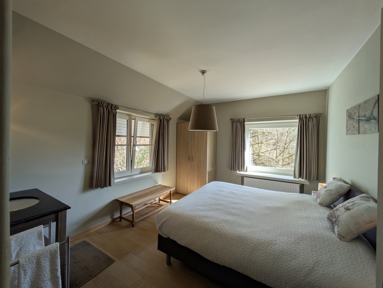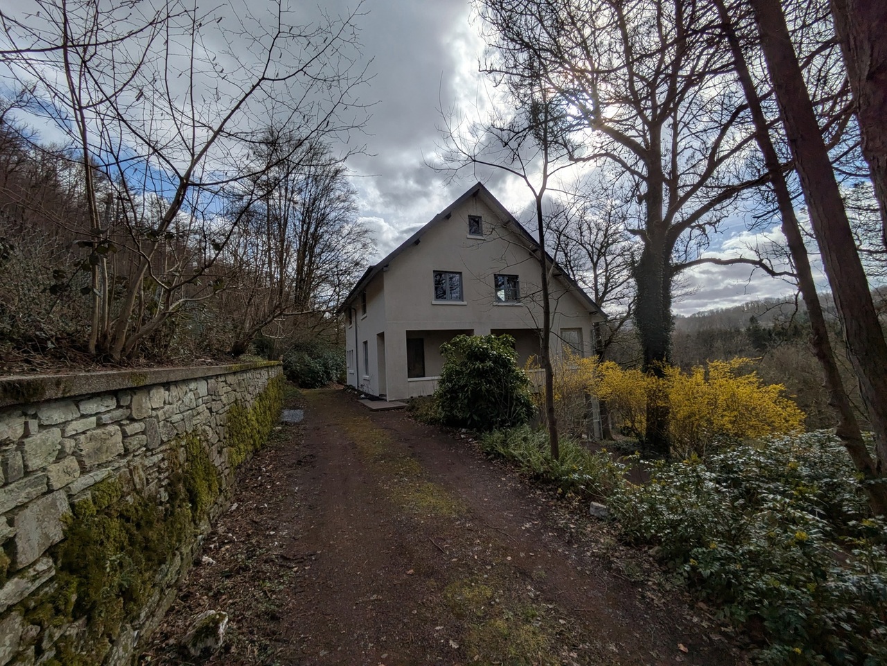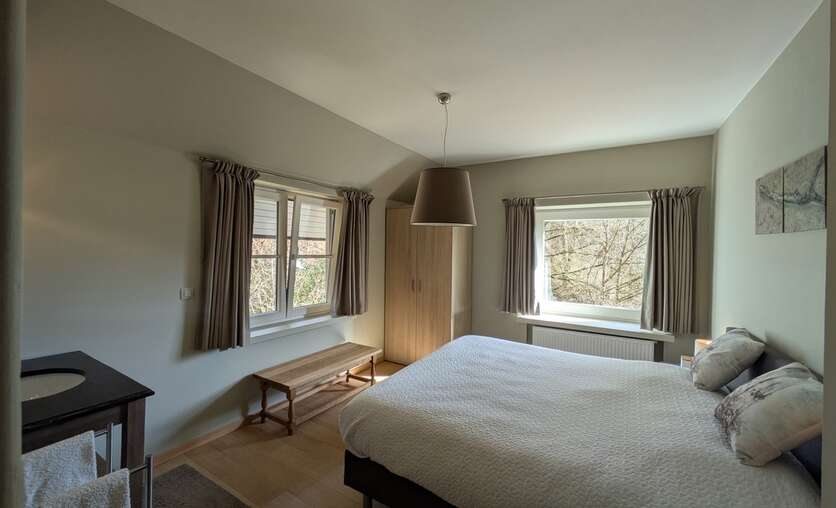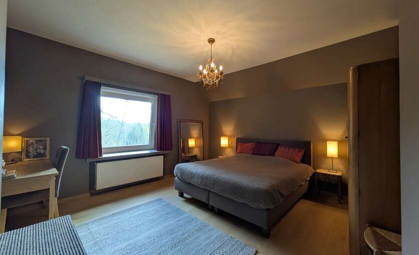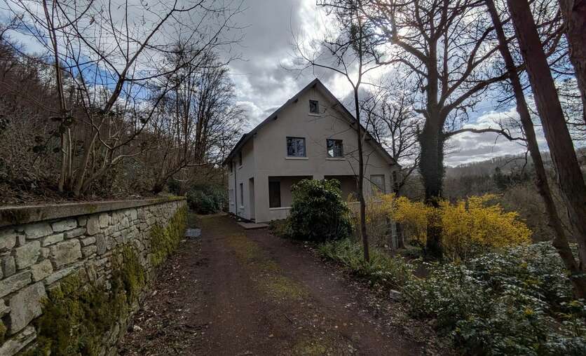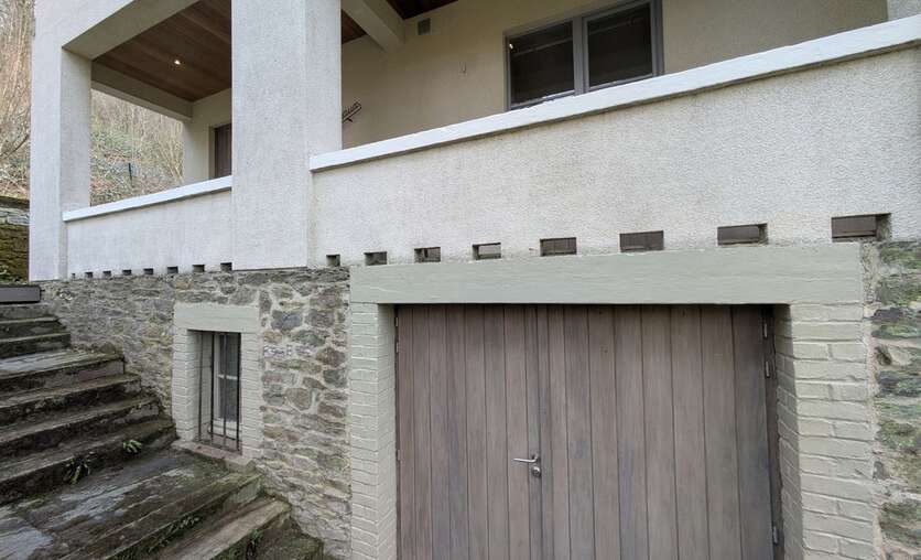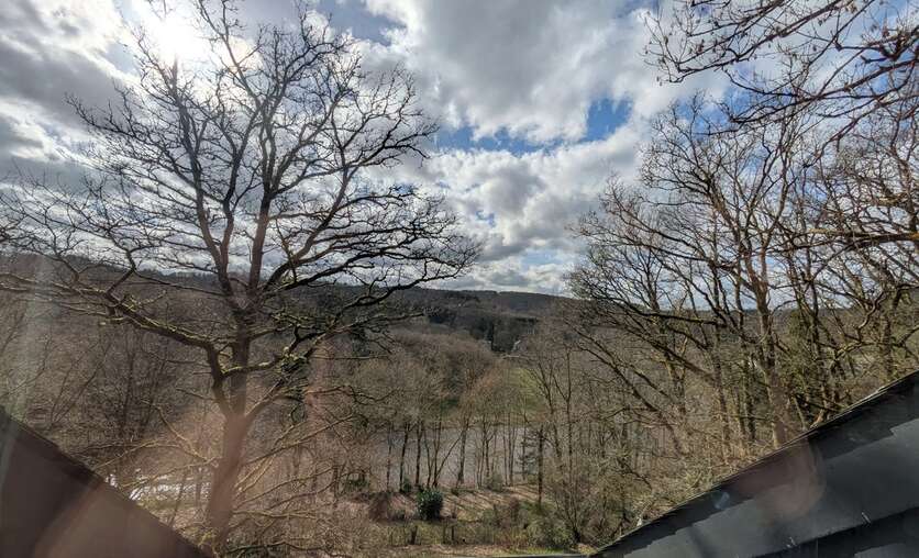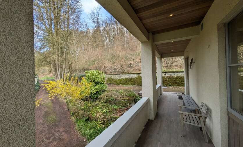 De woning is idyllisch gelegen, hoog in het bos, op het einde van een doodlopende weg en met zicht op lager gelegen Semois en vallei! Gewoon prachtig!
