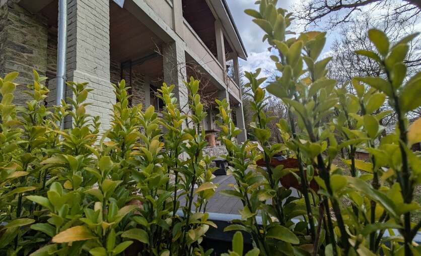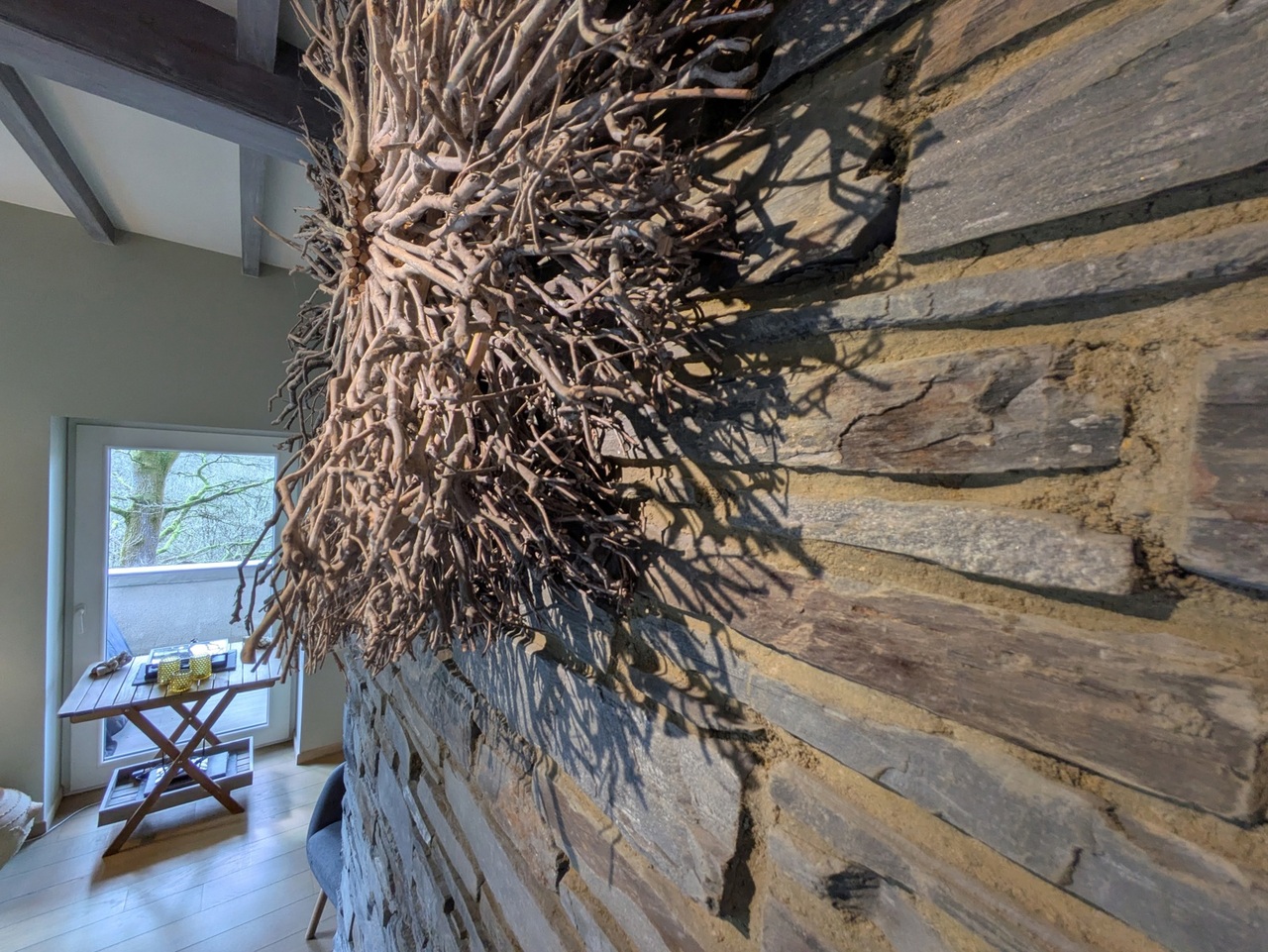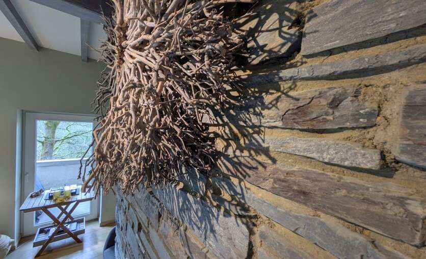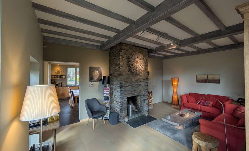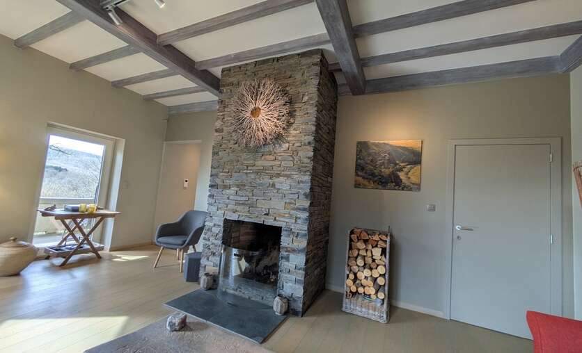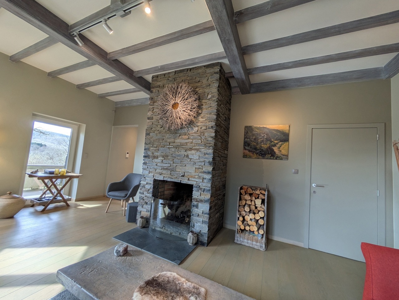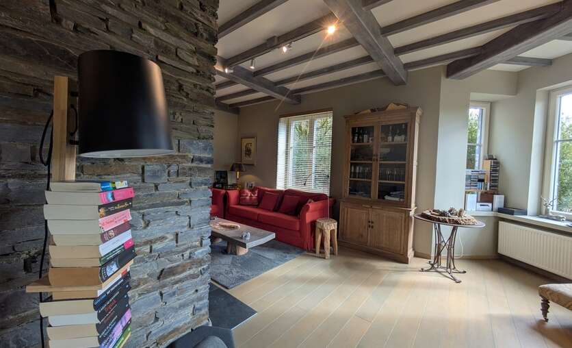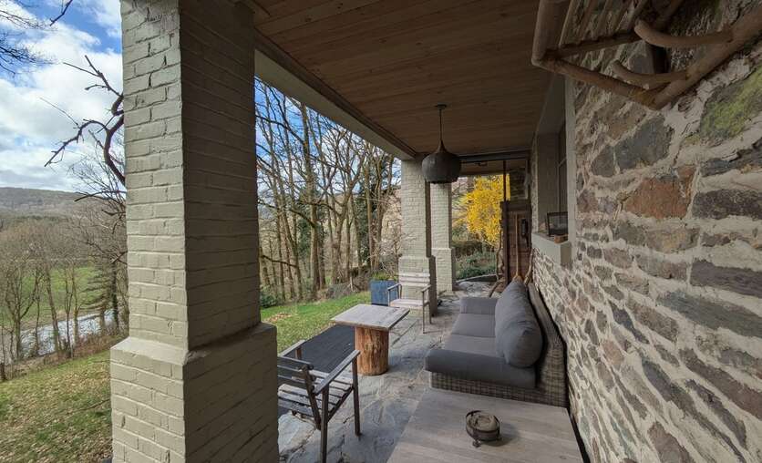 De woning is idyllisch gelegen, hoog in het bos, op het einde van een doodlopende weg en met zicht op lager gelegen Semois en vallei! Gewoon prachtig!