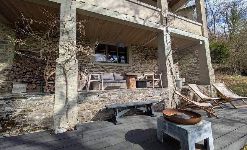 Deze woning bevindt zich op een hoogte en heeft 3 terrassen met zicht op de Semois!