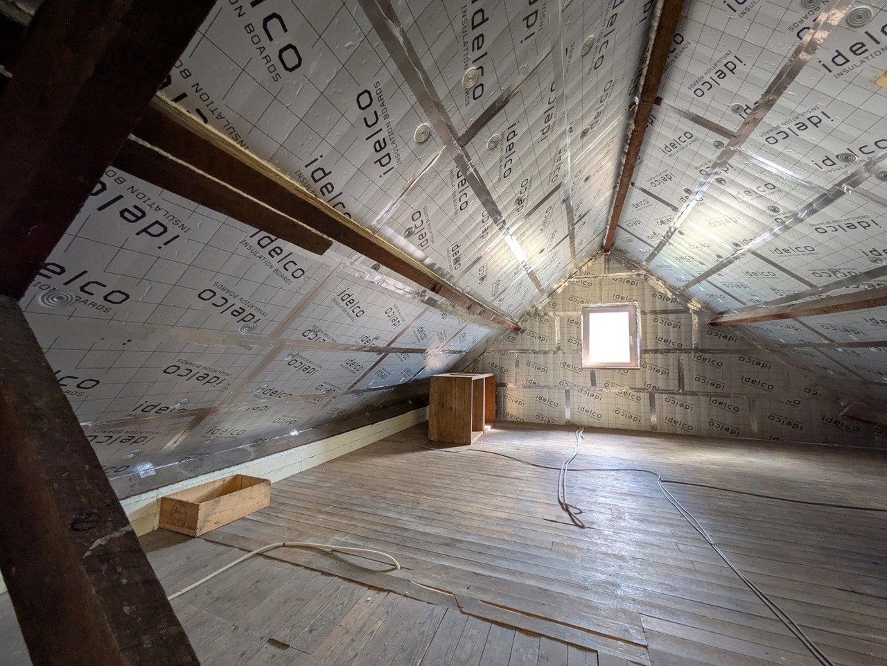 De totaalrenovatie werd recentelijk afgerond met het isoleren van de ruime zolder.