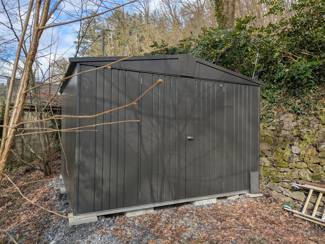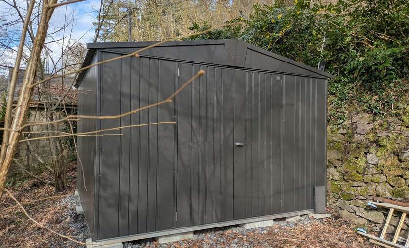 - Ruim Aluminium tuinhuis voor o.a. comfortabel uitrijden van grasmaaier