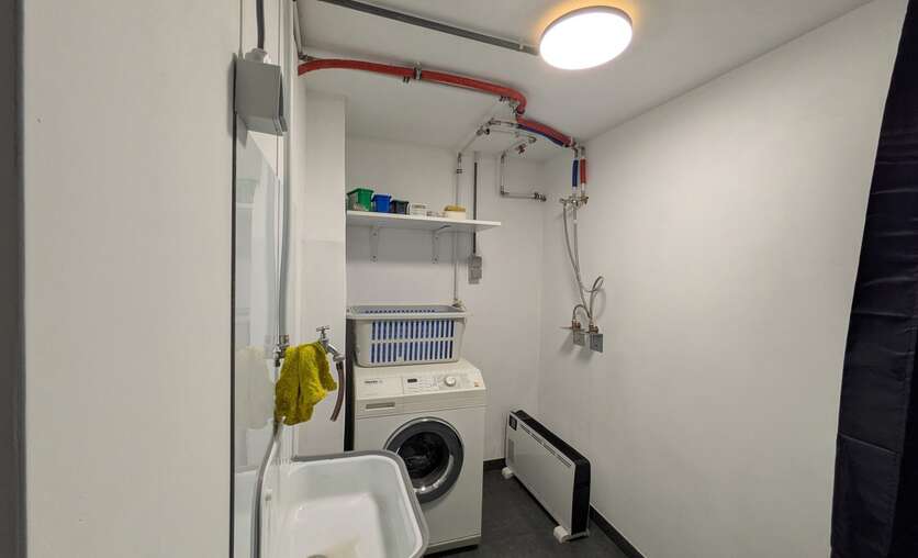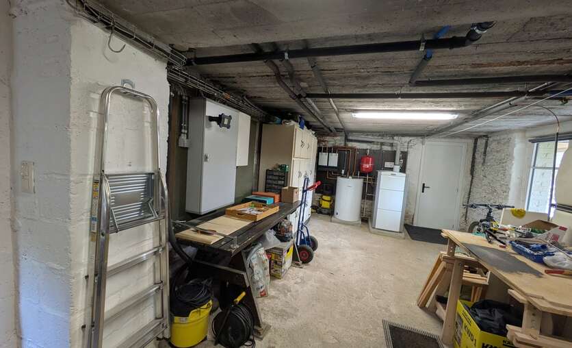 - Verdieping -1 : 60 m² met indeling trappenhal, wijnkelder, garage, technische ruimte met recente CV condensatieketel stookolie, wasplaats met geïnstalleerde doucheruimte en toegang tot de tuin.